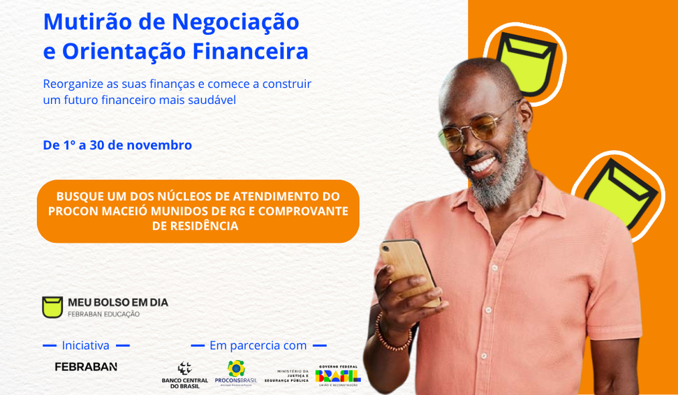 Promovido pela Federação Brasileira de Bancos(Febraban), em parceria com o Banco Central do Brasil, a Secretaria Nacional do Consumidor(Senacon) e os Procons, o mutirão segue até o dia 30 de novembro e reúne mais de 160 instituições financeiras e entidades parceiras.
