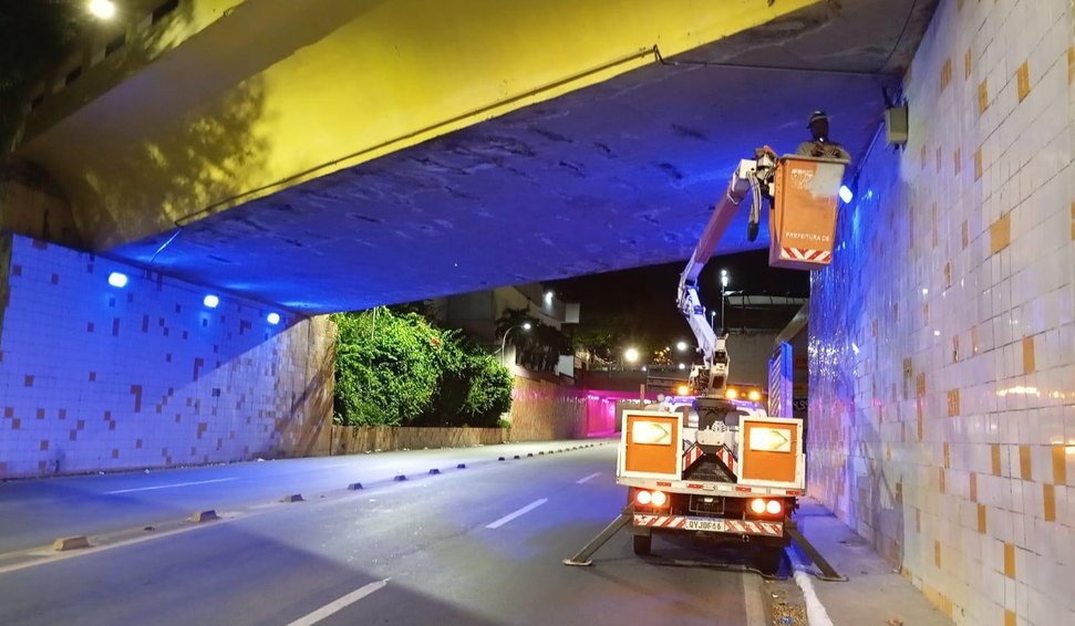 Viadutos e o canteiro da Avenida Sílvio Vianna, um dos principais cartões-postais de Maceió, recebem iluminação especial em apoio à saúde do homem