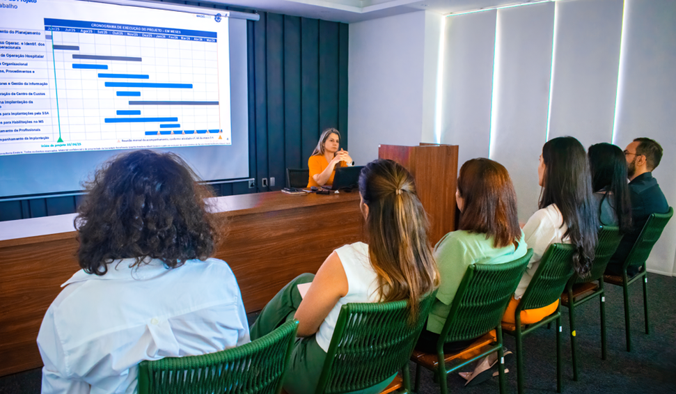Durante as reuniões de alinhamento, foram apresentadas as próximas entregas previstas para o fim de 2025 e o ano de 2026, incluindo a implementação de uma metodologia voltada à estruturação do centro de custos e a criação de um plano de ação para a implantação de novas áreas assistenciais, de apoio assistencial e administrativas.