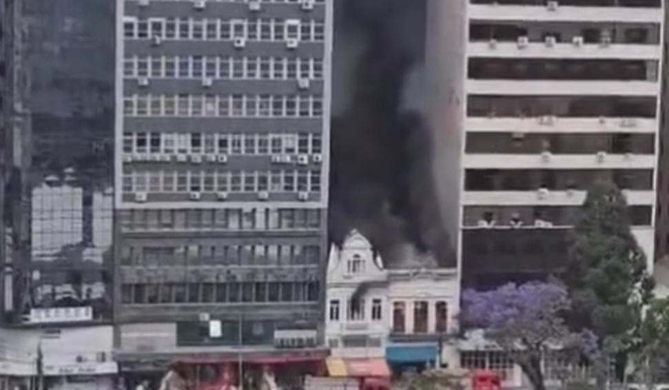 Incêndio de grandes proporções atinge prédio no Centro Histórico de Porto Alegre