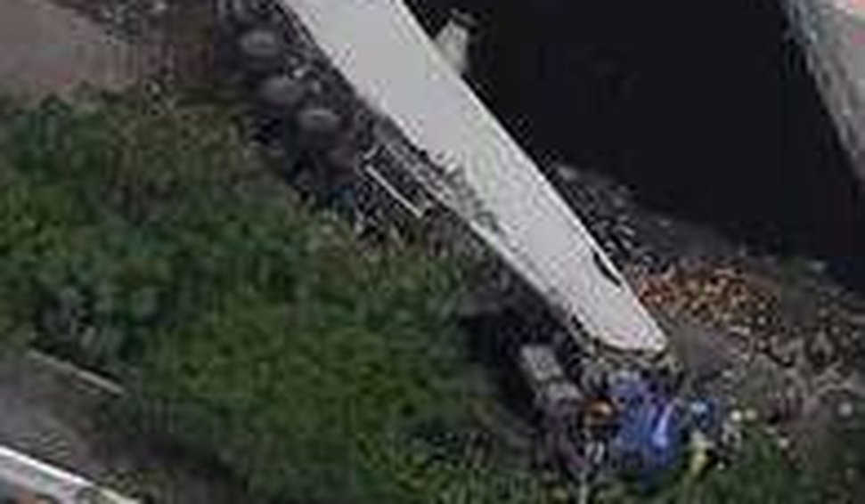 Caminhão com quatro pessoas cai de ponte na Marginal Tietê