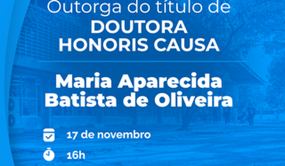 “Como uma justa homenagem a uma personalidade notória, não apenas pelo seu admirável percurso acadêmico, mas, sobretudo, pela sua trajetória de vida dedicada à luta pela educação pública, pelos direitos humanos, pela equidade de gênero, pela justiça social e pelo enfrentamento ao racismo”. Essa foi a pauta para a decisão do Conselho Superior Universitário (Consuni), da Universidade Federal de Alagoas (Ufal) para outorgar o título de Doutora Honoris Causa à professora Maria Aparecida Batista de Oliveira, recentemente aposentada.