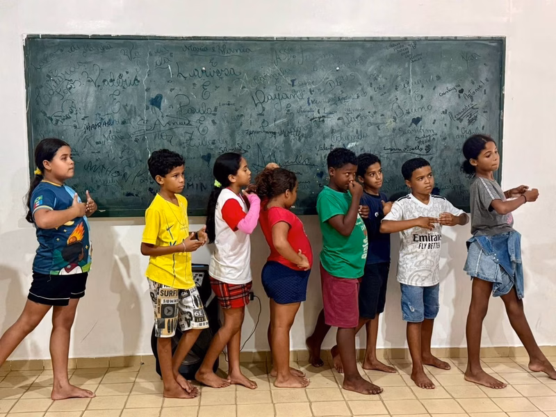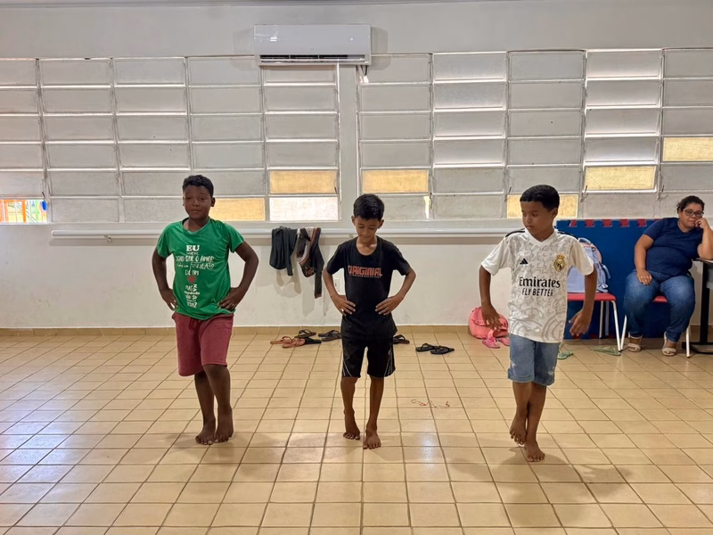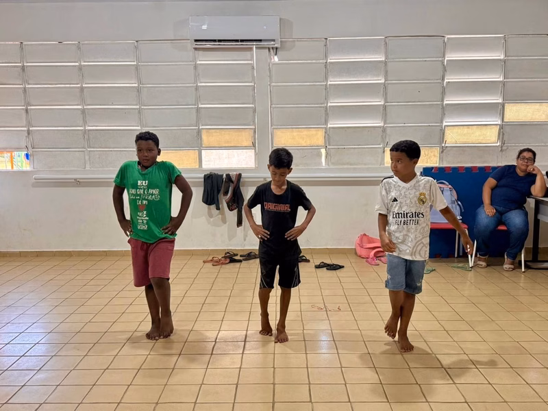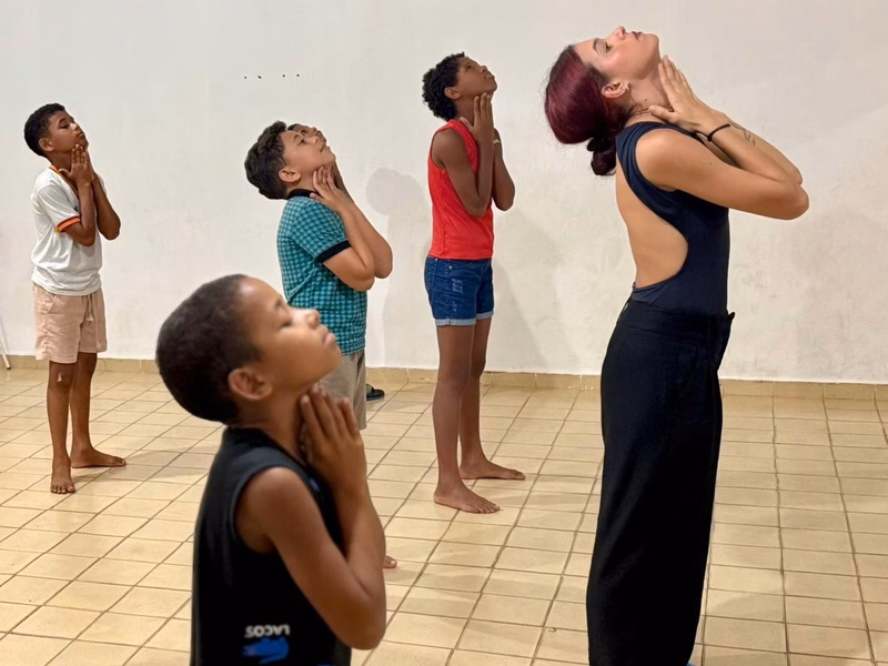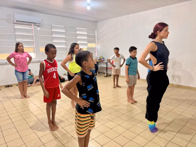 Ela promove uma experiência imersiva, inspirada em um ‘intensivão’ de preparação para um espetáculo musical, utilizando teatro e dança como ferramentas pedagógicas para desenvolver expressão corporal, autoconfiança e senso de pertencimento.