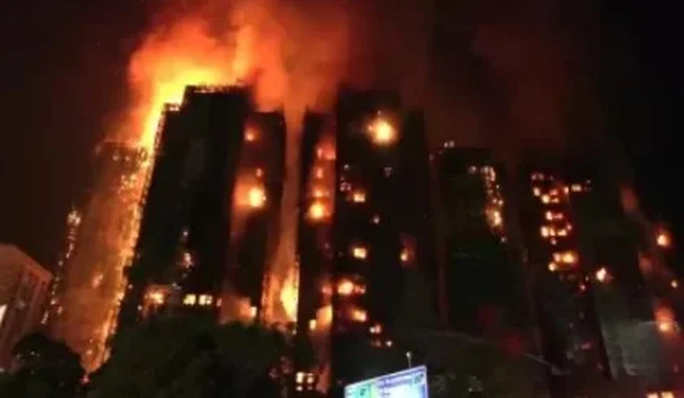 O incêndio atingiu sete dos oito edifícios do conjunto, todos com 31 andares. Em quatro deles, as chamas já foram controladas. O fogo teve início em andaimes de bambu usados em uma reforma e se espalhou rapidamente ao redor dos prédios.