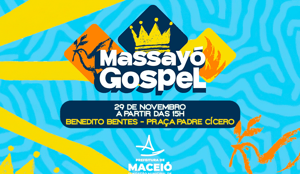 A Prefeitura de Maceió, por meio da Fundação Municipal de Ação Cultural (FMAC), promove neste sábado (29), a partir das 15h, mais uma edição do Massayó Gospel, na Praça Padre Cícero, localizada no bairro Benedito Bentes. O evento, totalmente gratuito, antecipa as comemorações pelo Dia do Evangélico, celebrado em 30 de novembro, e promete atrair milhares de pessoas em uma tarde de fé, louvor e gratidão.