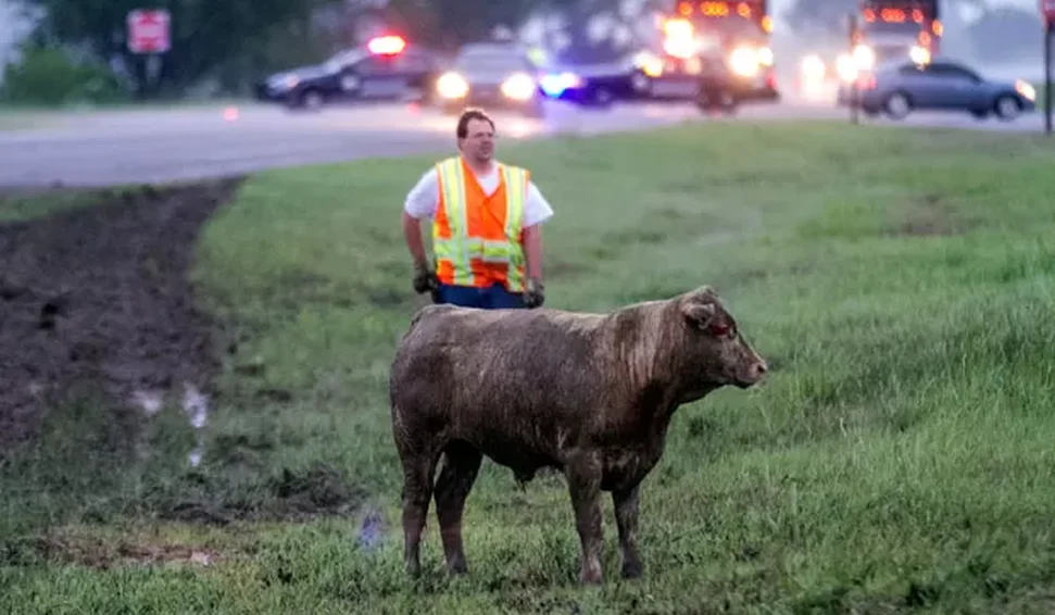 Três vacas causaram tumulto na rodovia I-5, no estado de Washington, Estados Unidos, após um acidente envolvendo a queda de um reboque.
