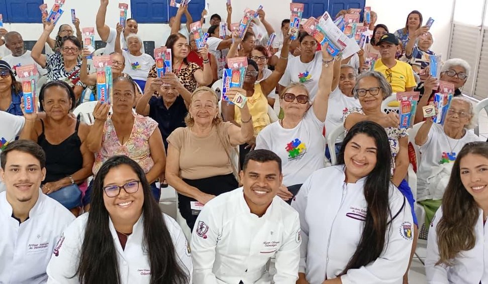 Idosos do Serviço de Convivência e Fortalecimento de Vínculos(SCFV) de do Centro de Referência de Assistência Social (Cras)Dom Adelmo Machado no bairro do Prado, participou de uma manhã rica de informações sobre saúde bucal com estudantes do curso de Odontologia da Uninassau Maceió. A ação faz parte do Projeto de Extensão da faculdade: Sorrisos em Risco - Prevenção Câncer de Boca em idosos.