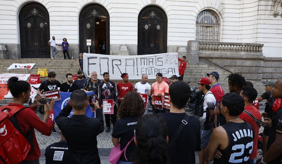 Um grupo de entregadores por aplicativo protestou nesta sexta-feira (28) contra uma modalidade nova de trabalho do iFood. Eles se reuniram na Cinelândia, região central do Rio de Janeiro, para pedir que a empresa reconsidere o sistema chamado de +Entregas, que prevê ao profissional agendar o horário de trabalho em uma região específica da cidade.