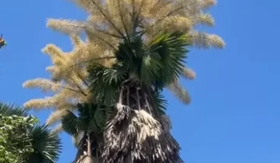 Uma palmeira pouco comum voltou a chamar a atenção no Rio de Janeiro (RJ): a talipot (Corypha umbraculifera), originária do sul da Índia e do Sri Lanka, entrou em fase de floração no Aterro do Flamengo e no Jardim Botânico na semana passada. O fenômeno é raro, pois a planta floresce apenas uma vez em sua vida — e morre cerca de um ano depois.