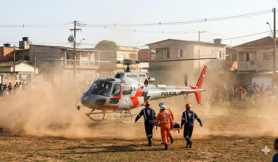 A vítima que sofreu a amputação foi socorrida de helicóptero e levada ao hospital.