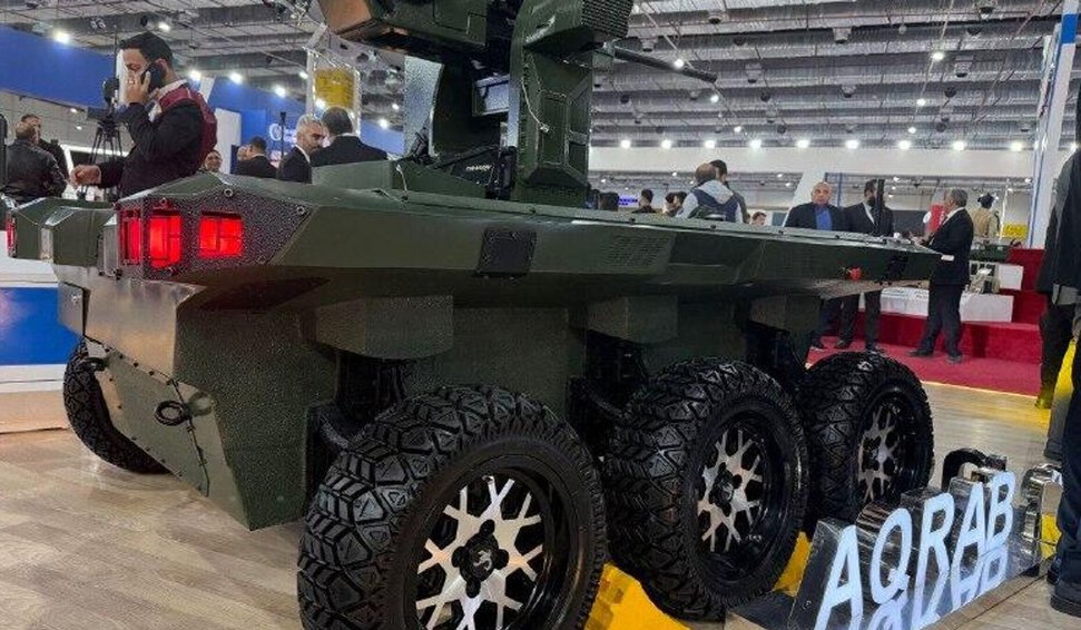 O Al-Aqrab é um veículo não tripulado projetado para missões terrestres, como reconhecimento, logística e apoio a tropas. Com design robusto e traços futuristas, o equipamento chamou a atenção de delegações estrangeiras presentes no evento.