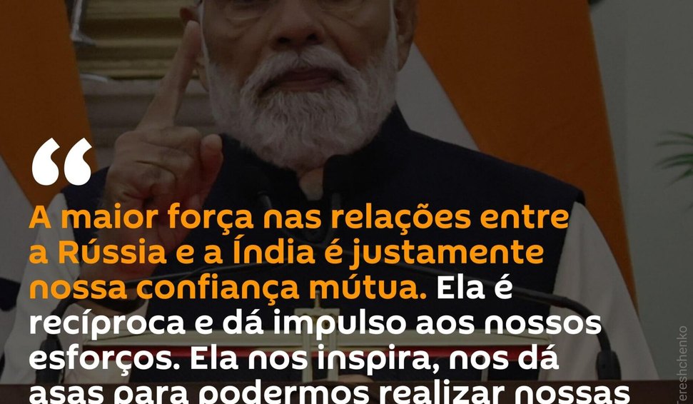 Segundo Modi, Moscou e Nova Deli são "amigos que trabalham em diferentes frentes" e, de acordo com o premiê, os dois países estão próximos de alcançar objetivos ambiciosos, tanto na diplomacia quanto nos negócios.