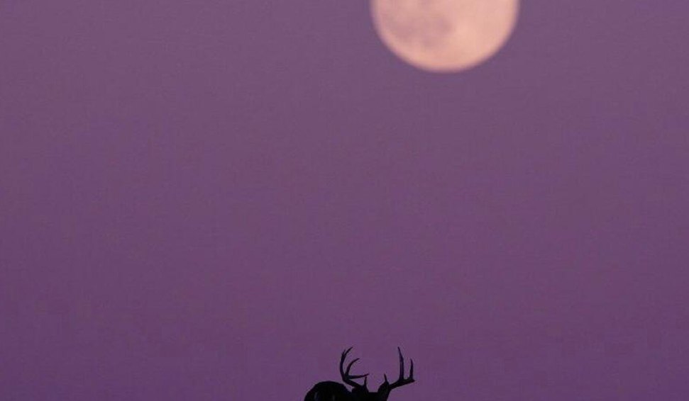 Um cervo foi flagrado caminhando serenamente sob a luz da lua cheia em Kansas City, no estado do Missouri, EUA.