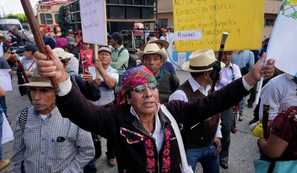 "Nós nos unimos à convocatória de paralisação nacional. É momento de defender a democracia e a vontade popular", declararam autoridades indígenas da organização ancestral Oxlajuj Noj, uma das mais representativas do país.