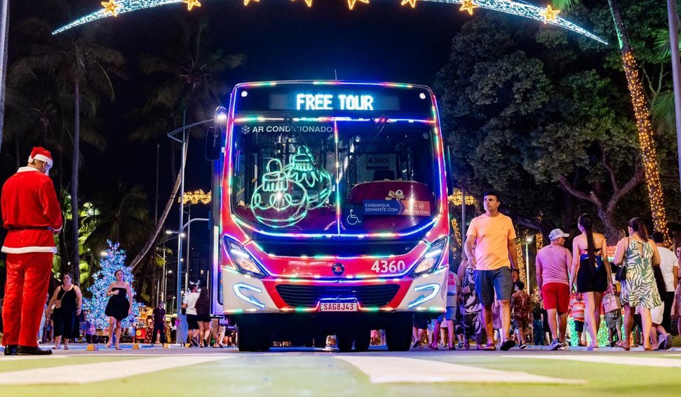 Com o espírito natalino tomando conta da cidade, a Prefeitura de Maceió, por meio do Departamento Municipal de Transportes e Trânsito (DMTT), iniciou a operação do tradicional Free Tour Natal Massayó. A ação oferece ônibus gratuitos para maceioenses e turistas aproveitarem as lojas de artesanato, estabelecimentos comerciais, restaurantes e o encanto da orla marítima da capital alagoana, proporcionando um passeio inesquecível.