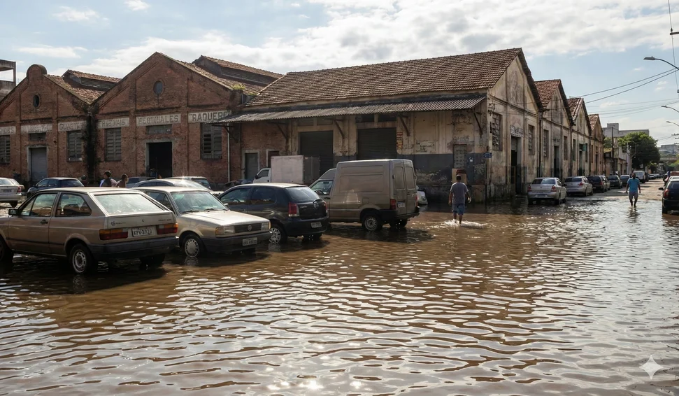 Imagens divulgadas nas redes sociais mostram ruas completamente tomadas pela água. O incidente causou o afundamento da pista e a queda de um ônibus na cratera formada.