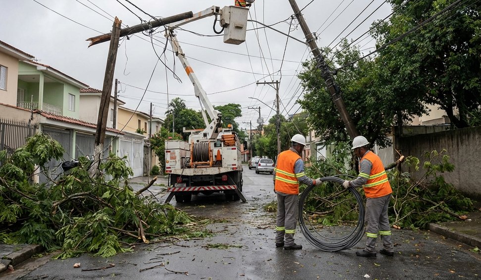Segundo a Enel São Paulo, equipes técnicas atuam em casos mais complexos de reconstrução da rede, incluindo trocas de cabos, postes e outros equipamentos. Os profissionais também trabalham para atender solicitações de falta de luz.