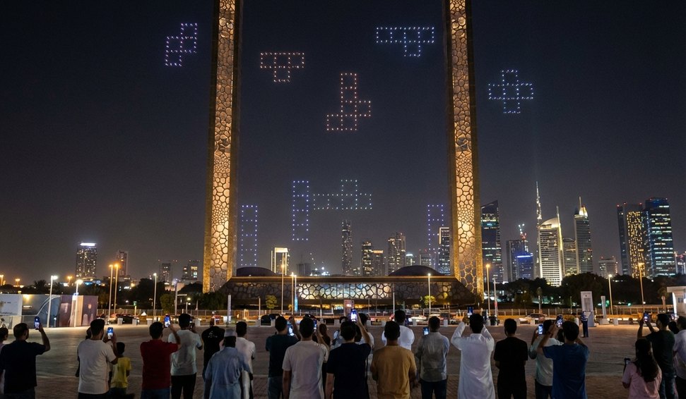 Dubai entrou para a história dos recordes ao promover a maior partida de Tetris já realizada no mundo. O icônico Dubai Frame, com seus 150 metros de altura, foi utilizado como uma gigantesca tela, onde centenas de drones desenharam as clássicas peças do jogo no céu noturno da cidade.