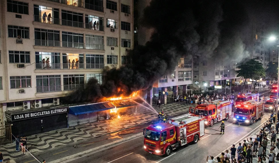 Incêndio mobiliza bombeiros em loja de motos elétricas em Copacabana
