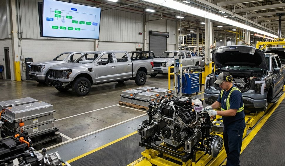 Até 2030, cerca de metade do volume global da Ford deve ser composto por híbridos, veículos de autonomia estendida e elétricos, contra os 17% atuais. A companhia também anunciou que transformará sua fábrica de baterias no Kentucky em um negócio de armazenamento de energia, voltado para concessionárias, projetos de energia renovável e centros de dados.