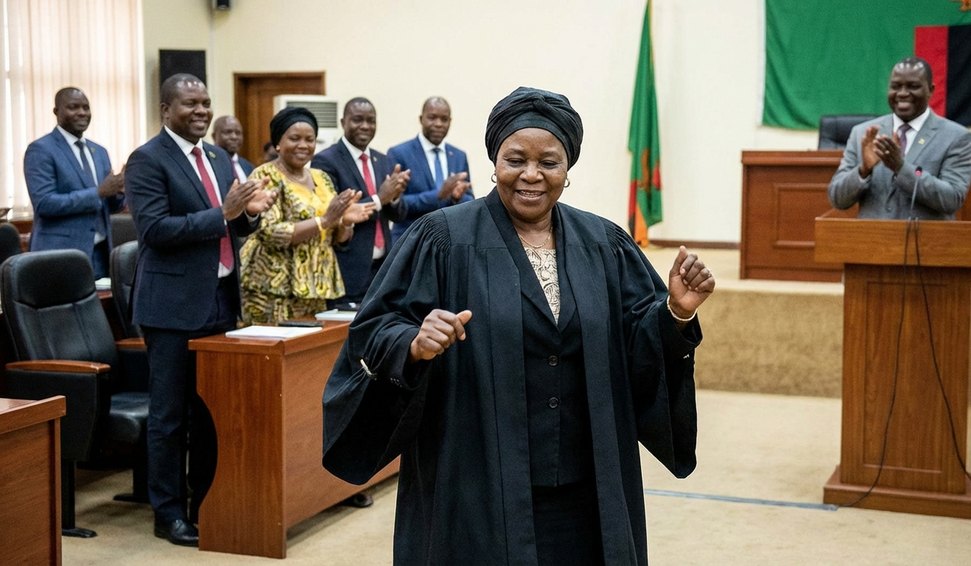 A presidente do Parlamento da Zâmbia, Nelly Mutti, protagonizou um momento de celebração ao dançar após a aprovação, por mais de dois terços dos votos, de emendas constitucionais consideradas históricas para o país.