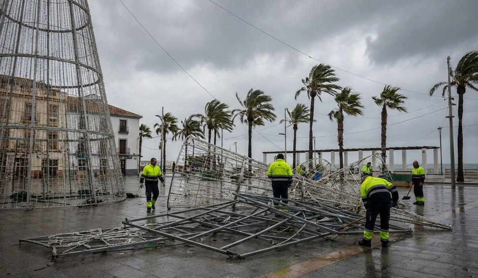 La Cala de Mijas, cidade costeira da região de Málaga, na Espanha, sofreu com ventos de até 130 km/h que destruíram a decoração natalina instalada nas ruas e praças. As fortes rajadas arrancaram luzes e enfeites, deixando o município sem o tradicional brilho das festas de fim de ano.