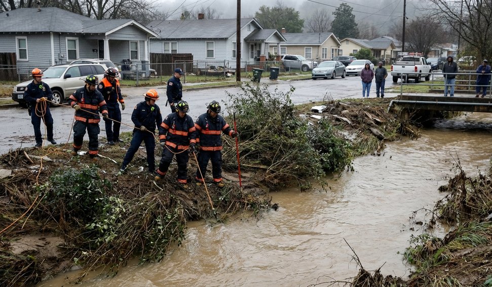 Equipes concentram esforços em córrego após carro ser arrastado por correnteza; Estado soma sete mortes desde dezembro devido às chuvas.