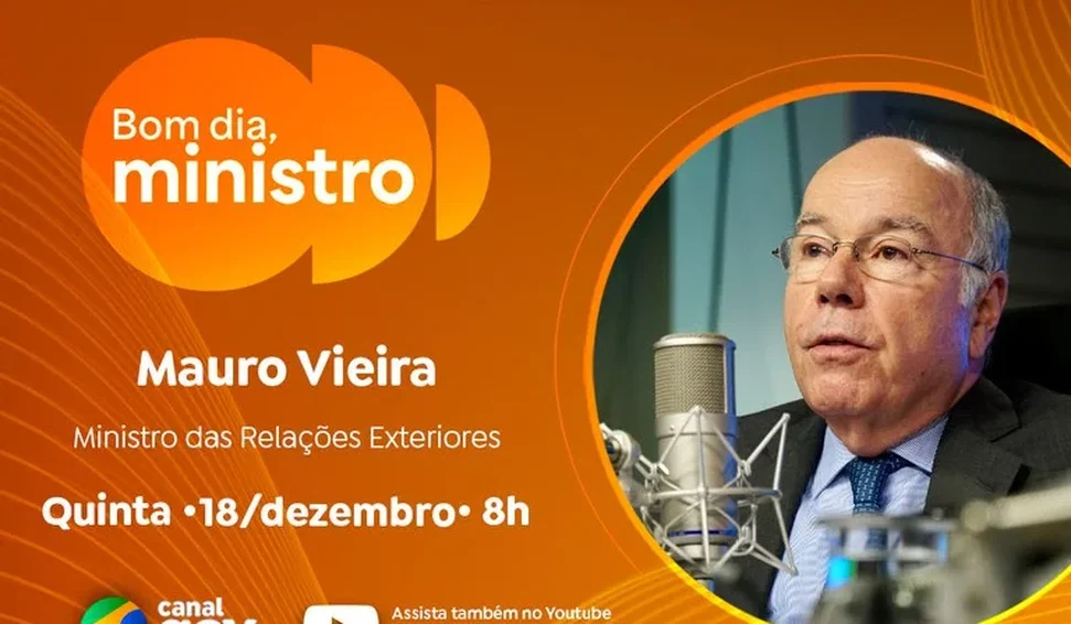 O ministro das Relações Exteriores, Mauro Vieira, é o convidado do “Bom Dia, Ministro” desta quinta-feira, 18 de dezembro. Durante conversa com profissionais de rádios e portais de várias regiões do país, a partir das 8h, ele vai detalhar o protagonismo internacional do Brasil na condução de importantes encontros políticos em 2025, além de fazer um balanço das ações da pasta ao longo do ano.