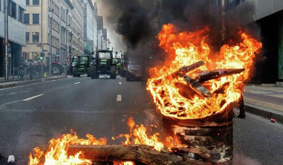 Bruxelas, Bélgica – Um barril em chamas marcou os protestos de agricultores realizados nesta quarta-feira em frente ao Parlamento Europeu. O ato, que reuniu dezenas de manifestantes, buscou chamar a atenção das autoridades para as demandas do setor agrícola.