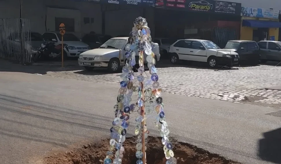 “Árvore de CD” ressuscita em buraco da Águas do Sertão e vira símbolo do caos urbano