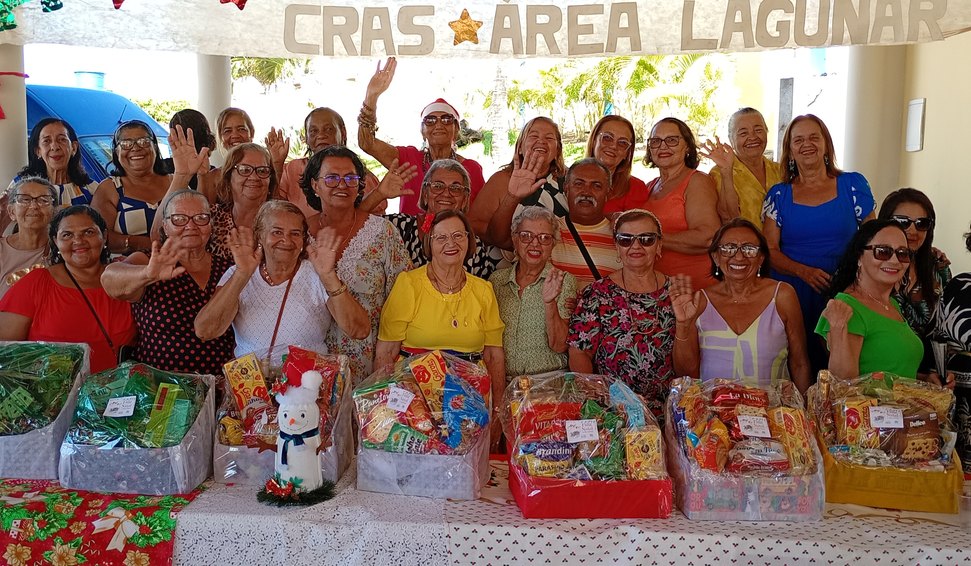 O grupo de idosos e mulheres do Cras Cacilda Sampaio também se reuniu para celebrar um ciclo repleto de atividades. A programação incluiu apresentações dos grupos de pastoreio da unidade, do Coral Gogó de Ouro do Cras Santos Dumont, além de sorteios de cestas e brindes para as mulheres e idosas do coletivo.