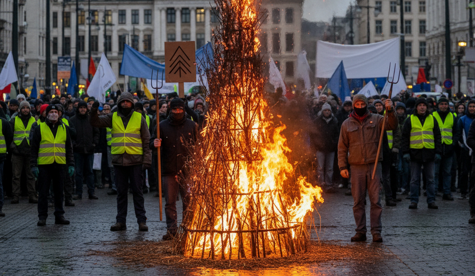 O principal alvo dos manifestantes foi o acordo comercial entre União Europeia e Mercosul, classificado por eles como um "erro histórico". Durante a manifestação, uma árvore de Natal foi incendiada ao som de gritos de "Feliz Natal!". Há relatos de que edifícios próximos ao Parlamento Europeu também teriam sido atingidos pelo fogo, mas, até o momento, apenas o incêndio da árvore natalina foi confirmado por imagens.