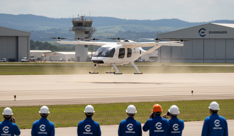 Subsidiária da Embraer conclui teste pioneiro com eVTOL em escala real e projeta início das operações comerciais para 2027