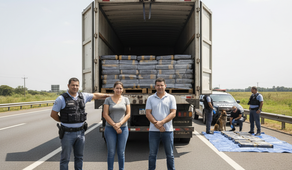 Polícia prende casal paraguaio com 350 kg de cocaína escondidos em caminhão