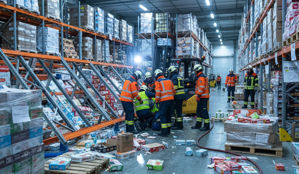 Homem é resgatado após queda de toneladas de produtos congelados em atacadista