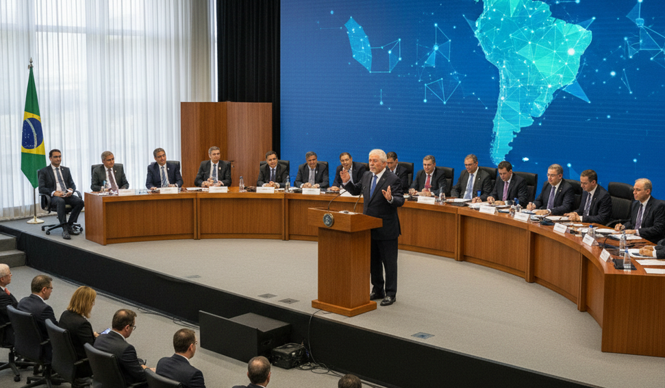 Presidente brasileiro destaca integração regional e desafios econômicos durante encontro de líderes sul-americanos.