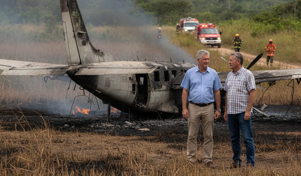 Deputado Maurício Carvalho e vereador Márcio Pacele saem ilesos após pane e incêndio em aeronave em Extrema, distrito de Porto Velho.