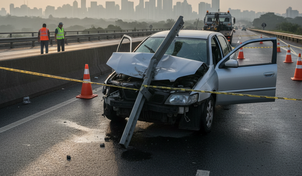 Guard-rail perfura carro em acidente na Zona Sul de São Paulo