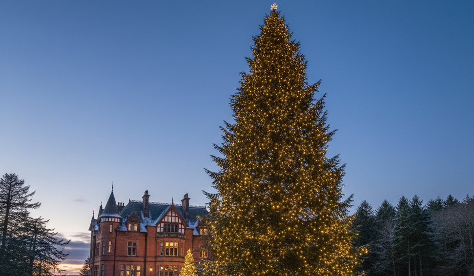 Árvore de 44,7 metros instalada em mansão histórica entra para o Guinness e se torna atração natalina no norte do país.