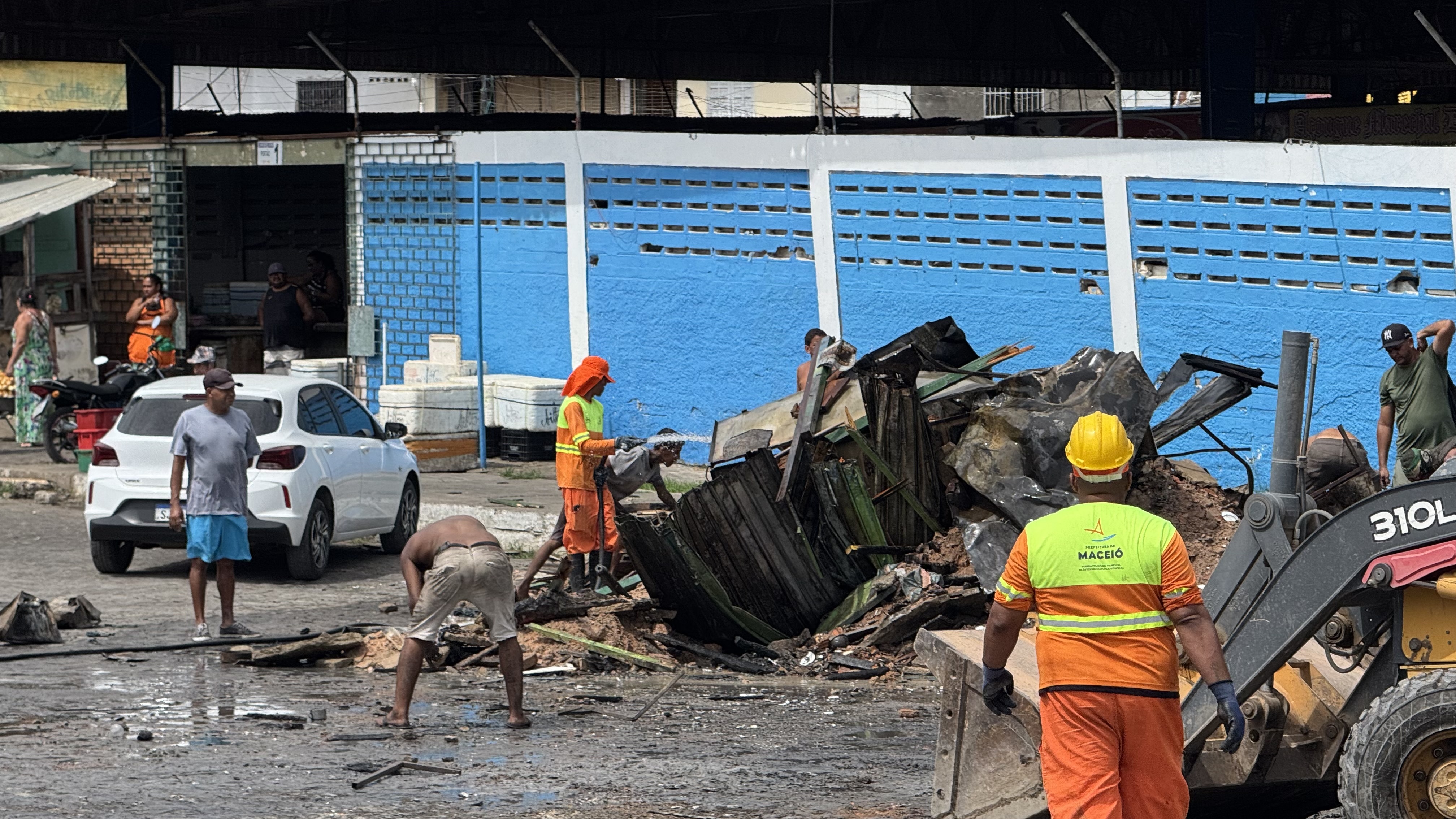 A Prefeitura de Maceió mantém equipes mobilizadas desde o final da noite deste domingo (21) no entorno do Mercado da Produção, no bairro da Levada, após um incêndio atingir 10 barracas de diferentes segmentos comerciais.