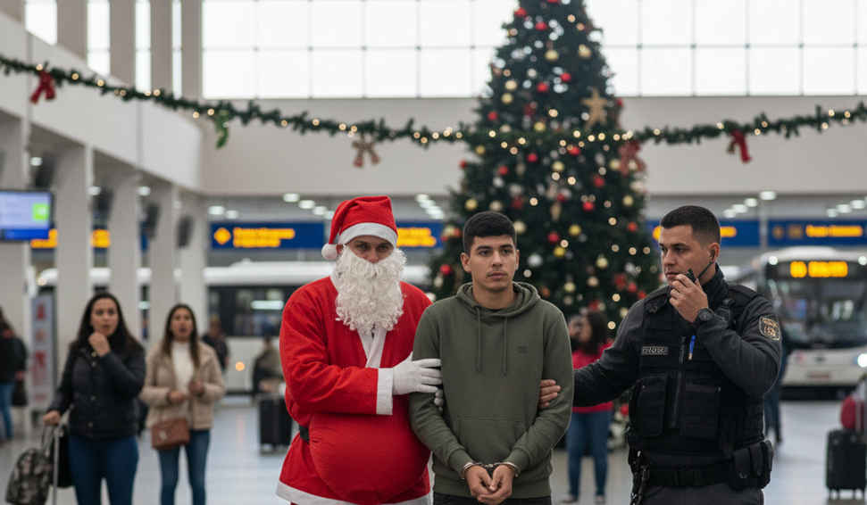 Policial vestido de Papai Noel prende foragido na rodoviária de Porto Alegre
