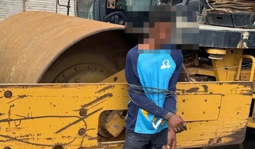 Segundo informações apuradas no local, o suspeito foi surpreendido no momento em que tentava retirar o equipamento da área da obra. Para impedir a fuga e garantir a recuperação do material, o vigilante decidiu imobilizá-lo, prendendo-o a uma das máquinas utilizadas nos serviços de infraestrutura em andamento.