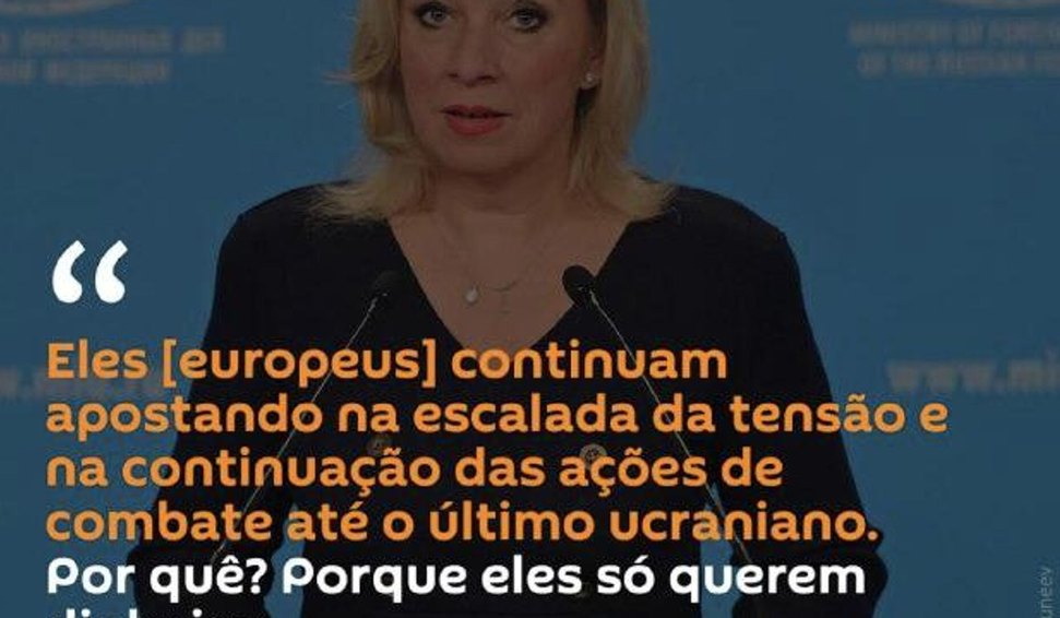 Maria Zakharova, representante oficial do Ministério das Relações Exteriores da Rússia, declarou em coletiva de imprensa que os países europeus que apoiam o governo de Kiev insistem na escalada do conflito na Ucrânia até o último ucraniano, motivados por interesses financeiros.