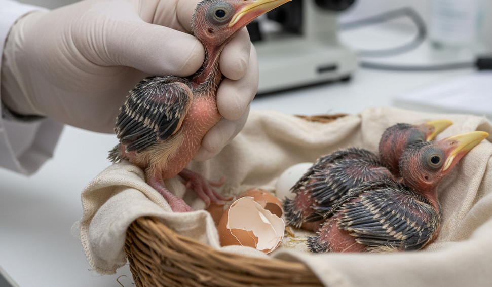 As imagens, capturadas e divulgadas pelo médico-veterinário Lucas Ribeiro, documentam os primeiros 37 dias de vida das aves, desde o ovo até os primeiros movimentos.