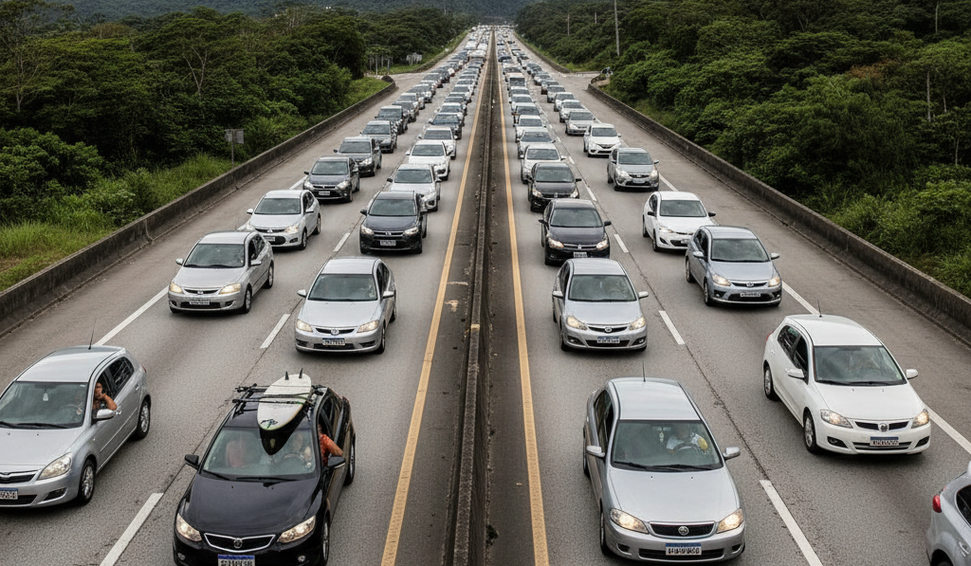Para agilizar a descida da serra, está em vigor a Operação 7x3, que destina sete faixas para o sentido litoral e três para o sentido capital. O esquema, realizado pela Ecovias durante períodos de maior movimento, busca garantir maior fluidez ao tráfego no fim de semana que marca o início da alta temporada.