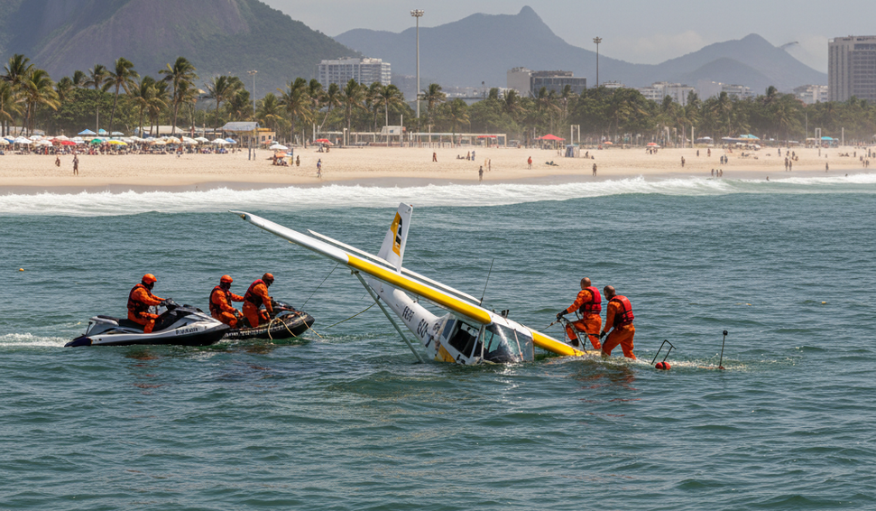 Ultraleve cai no mar de Copacabana, no Rio de Janeiro