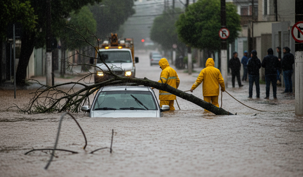 Chuva forte causa quedas de árvores, desabamentos e alagamentos; Defesa Civil mantém alerta e Enel reforça equipes.