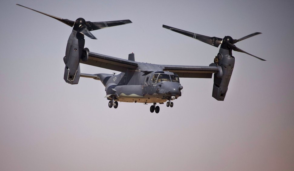 O modelo, com seis toneladas, combina as capacidades de decolagem e pouso verticais de um helicóptero com o voo horizontal em alta velocidade típico de aviões.