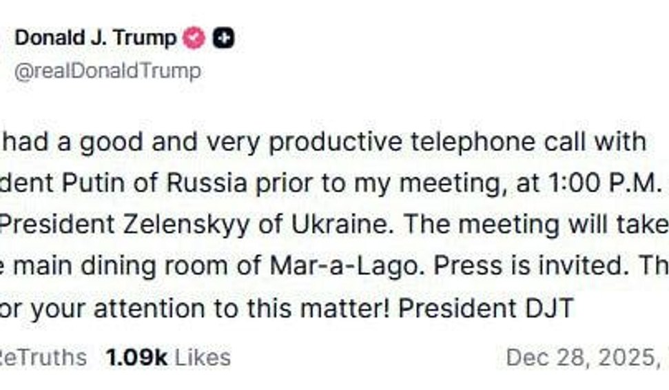 "Acabei de ter uma conversa telefônica muito produtiva com o presidente Putin, da Rússia, antes da minha reunião de hoje com Zelensky. A reunião acontecerá no salão principal de Mar-a-Lago", escreveu Trump em seu perfil na rede Truth Social.
