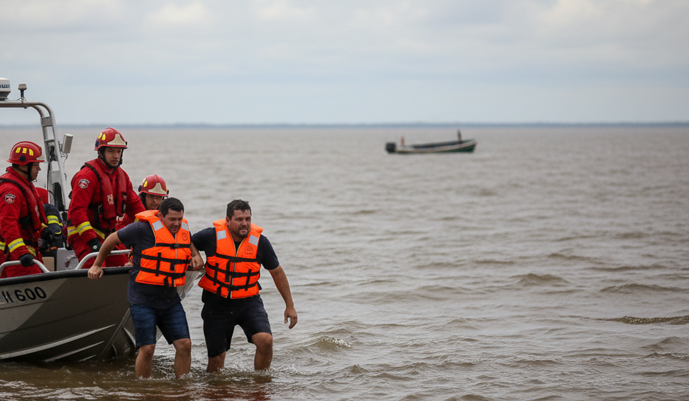Pescadores ficaram à deriva no Rio Paraná, em Presidente Epitácio, após naufrágio causado por ventos fortes; todos passam bem.